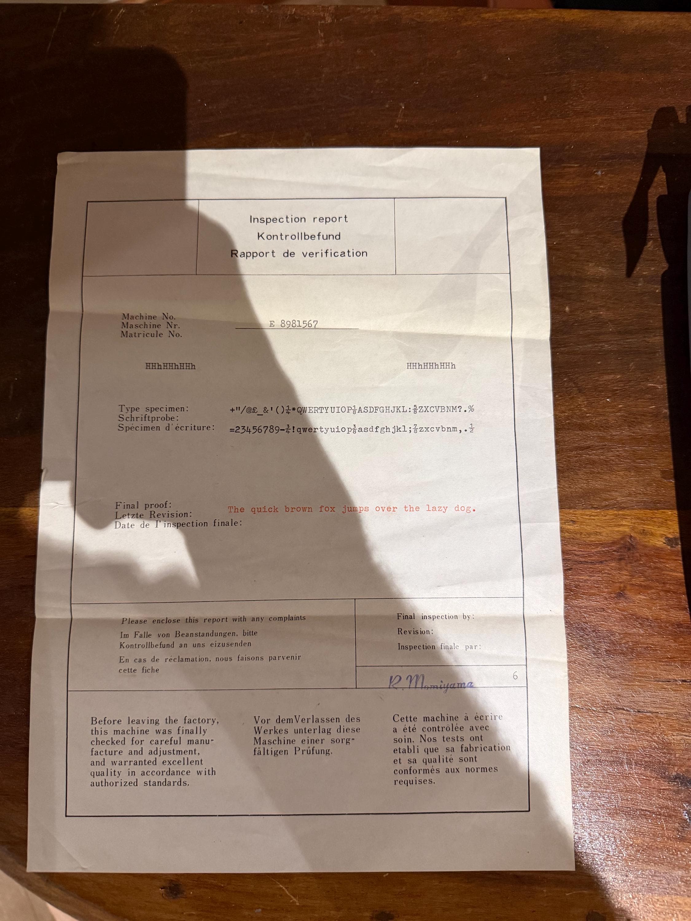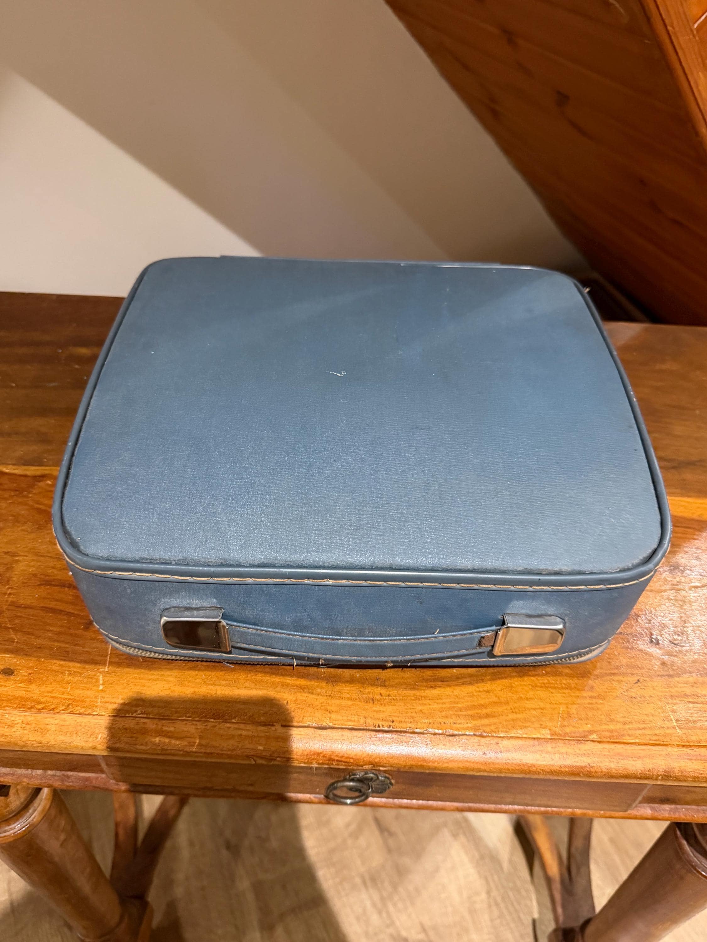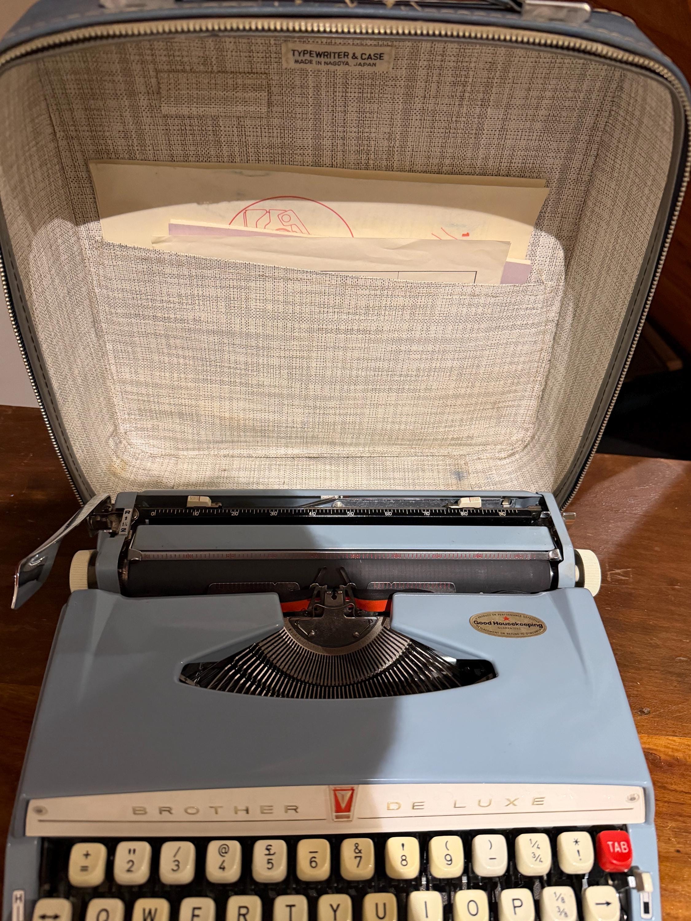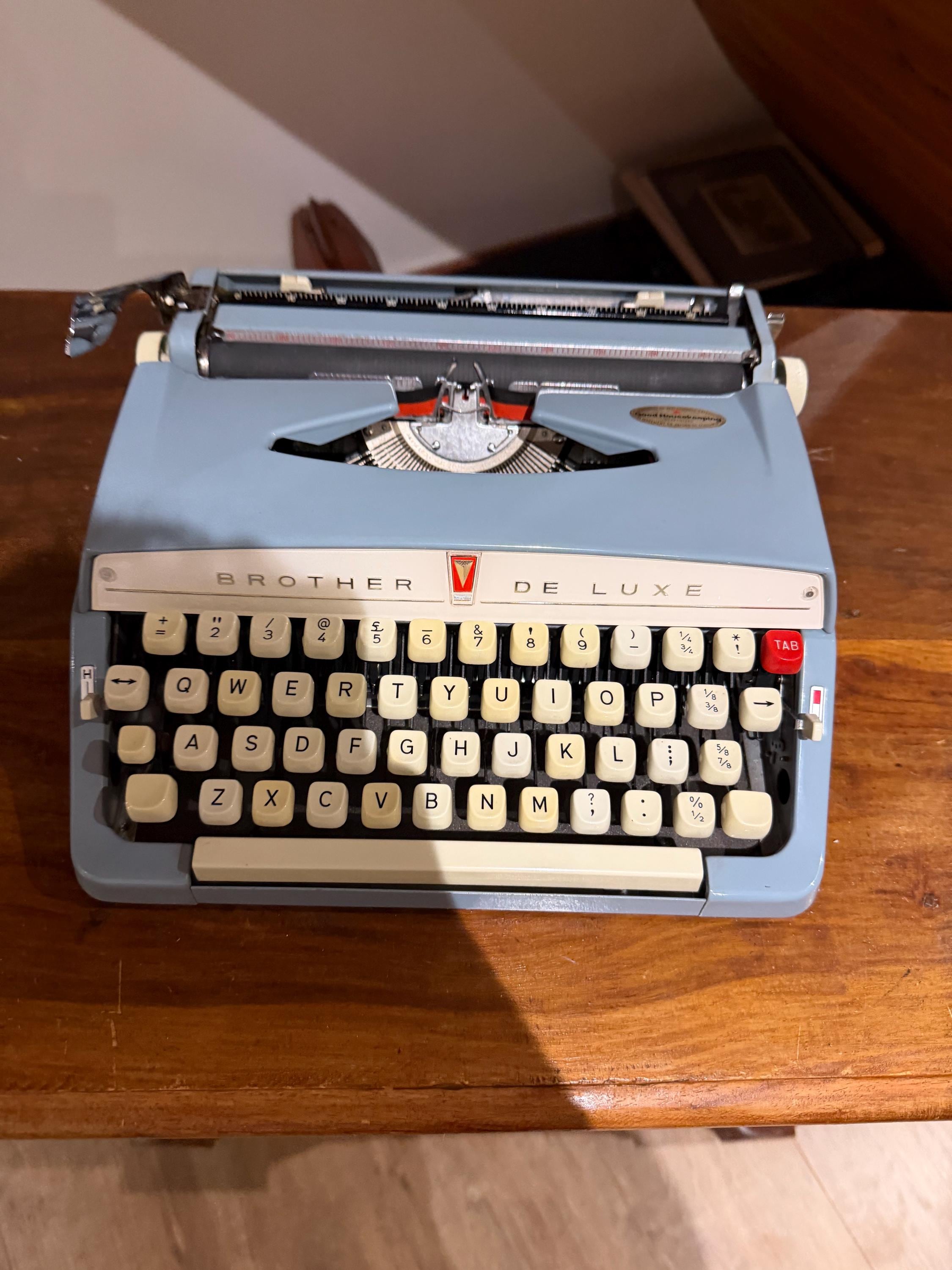 The Ultimate Writer’s Time Capsule: 1968 Brother De Luxe This is an exceptional example of the classic Brother De Luxe portable typewriter in its most iconic powder blue finish. This machine isn't just a display piece; it is a fully functional, verified set with every original accessory a collector could want. • Mechanical Condition: Fully working with smooth key action and carriage return. The signature Red TAB button is present and fully operational. • Original Paperwork: Includes the rare original Inspection Report (Serial No. E 8981567), the "Care and Maintenance" manual, and the original "Good Housekeeping" guarantee seal. • Complete Accessory Kit: Includes 5 vintage packs of Tipp-Ex Europa correction paper and an original plastic typing stencil. • Protective Case: Comes with the original zip-up carrying case. Note: The case opens freely, but there is a small tear near the zipper as shown in the photos. • Provenance: Made in Nagoya, Japan, in May 1968.