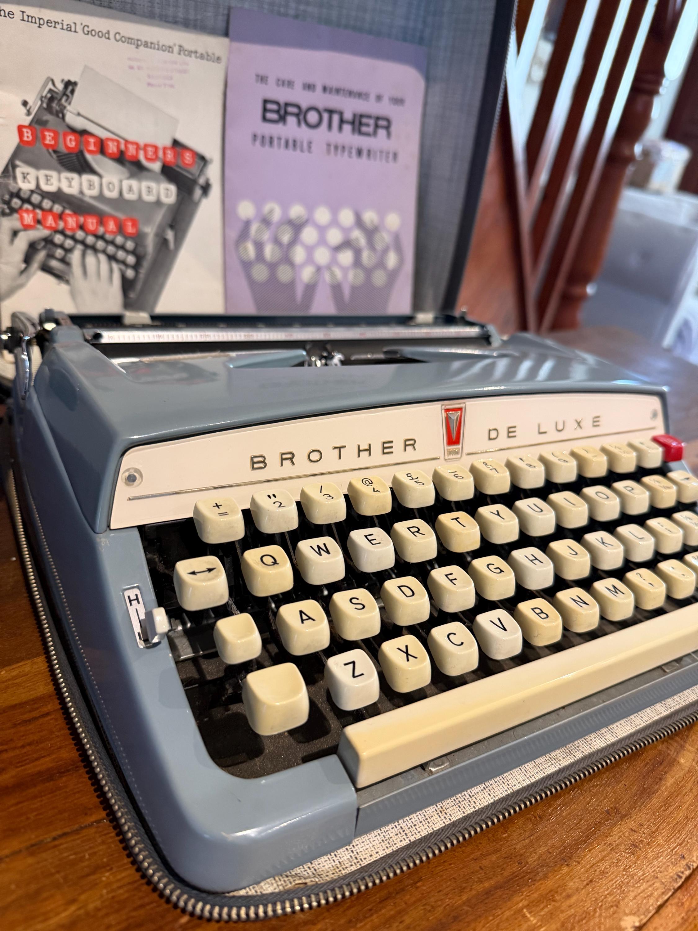 • Mechanical: The keys are snappy and responsive. The carriage moves smoothly, and the bell dings clearly! • Aesthetic: Excellent vintage condition. The body is clean with minimal age-related wear. • Case: Comes with its original grey hardshell carrying case, which has protected it well over the decades. • Extras: Includes two rare original manuals: The Care and Maintenance of Your Brother and a Beginners Keyboard Manual.
