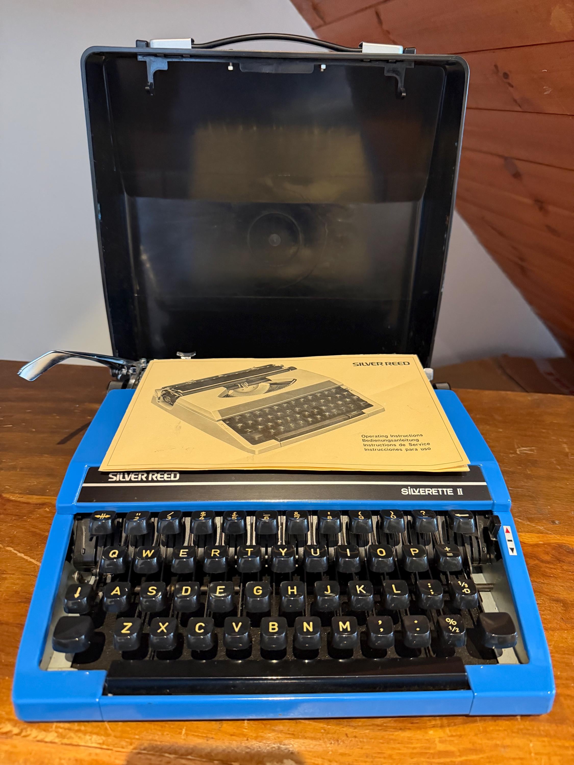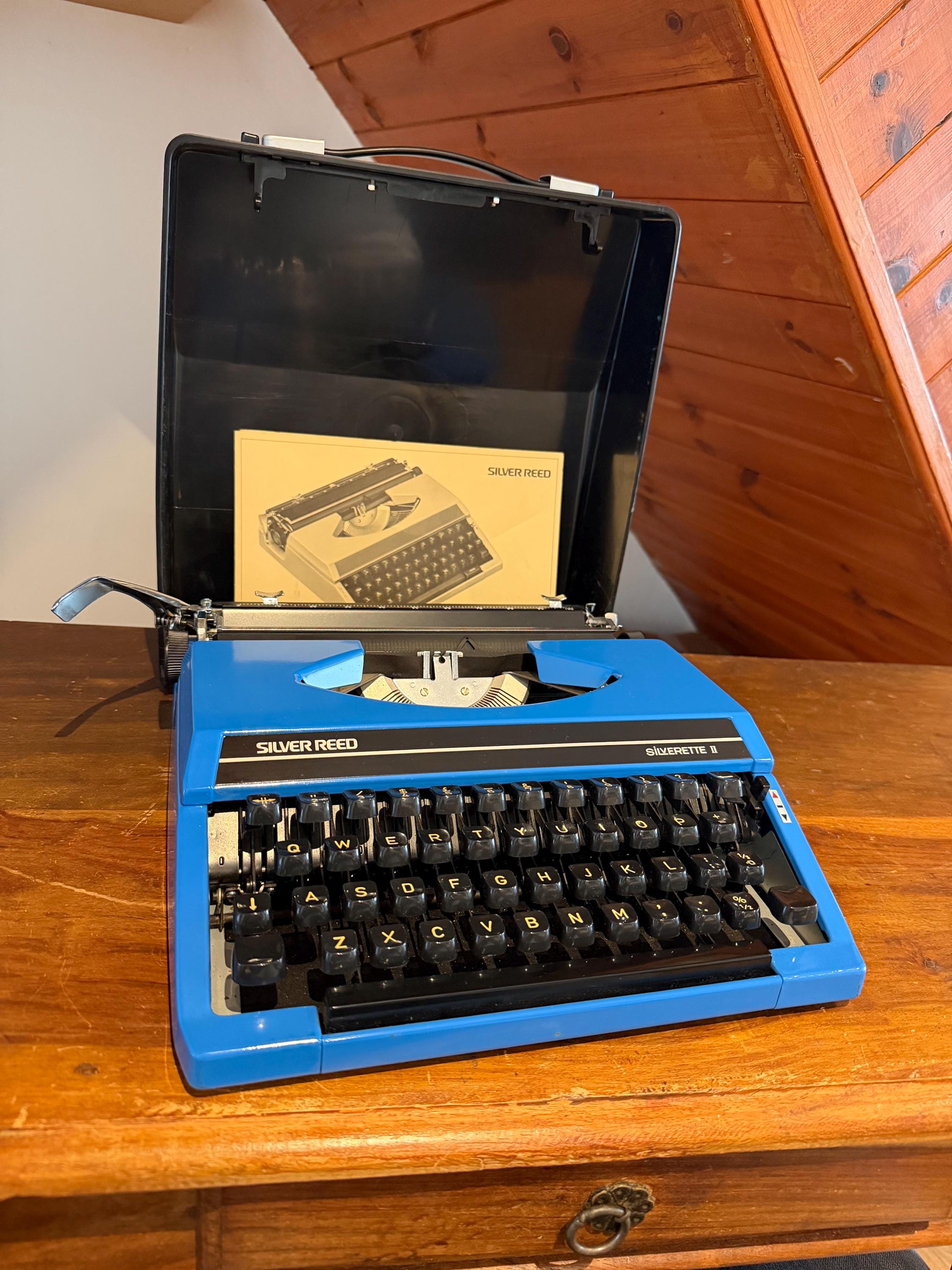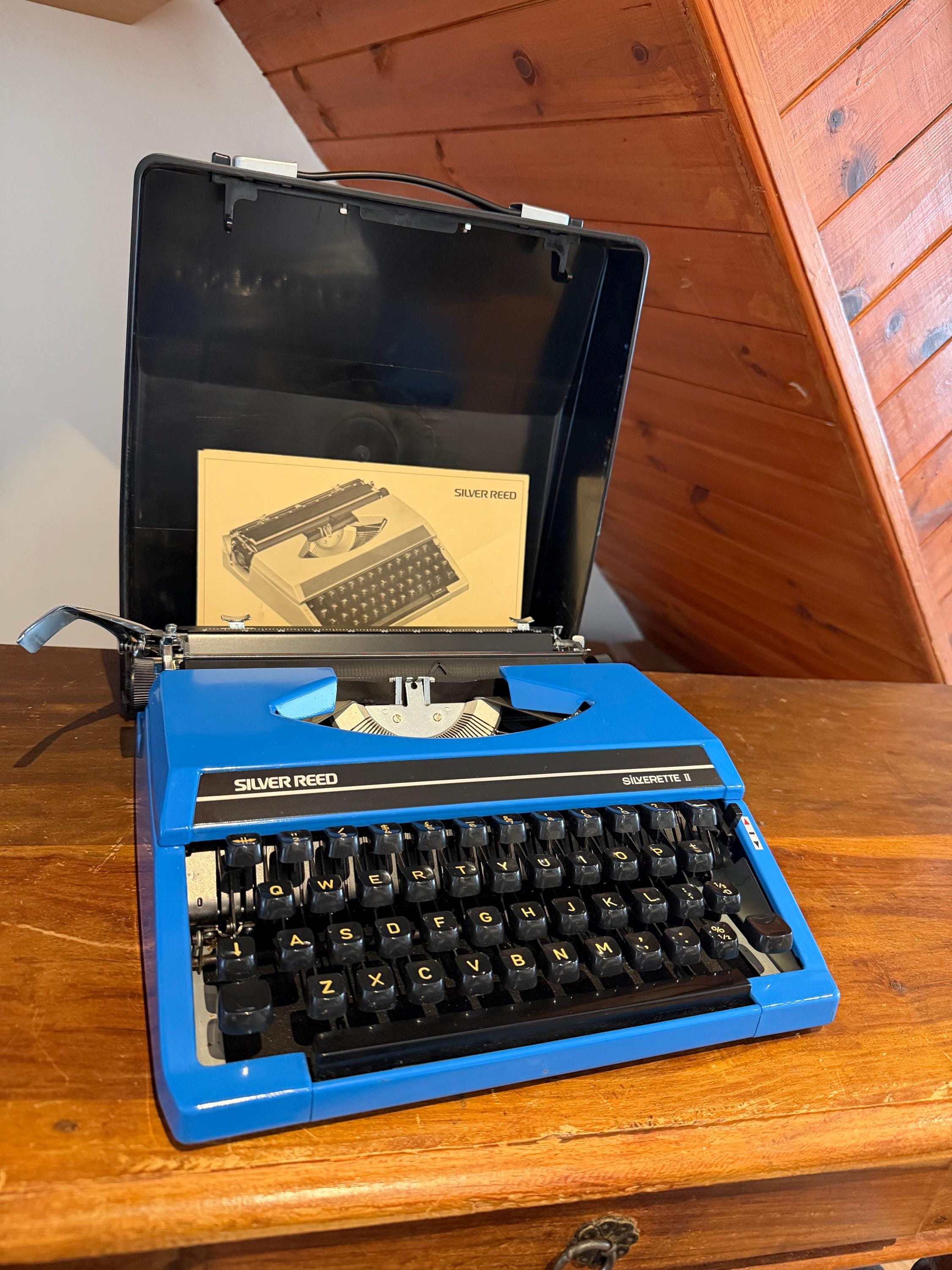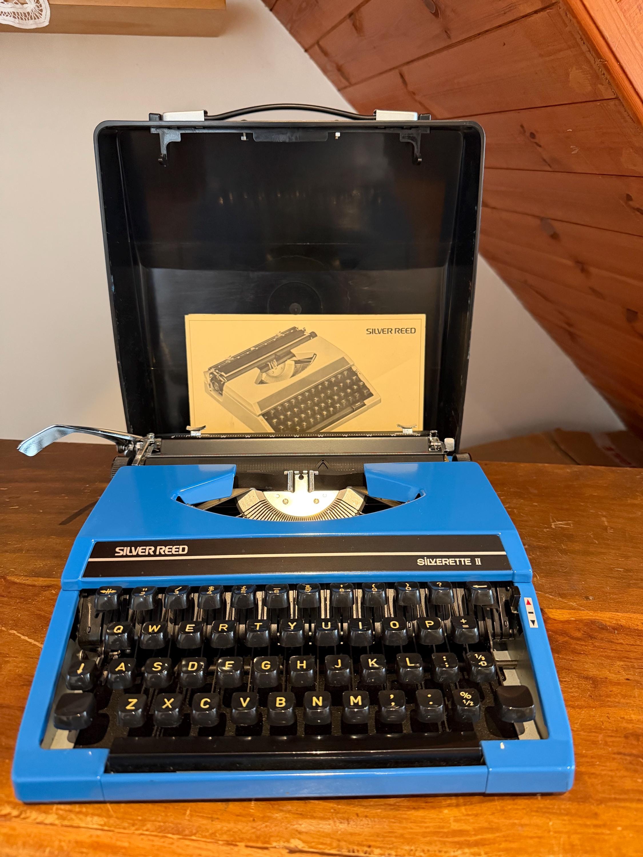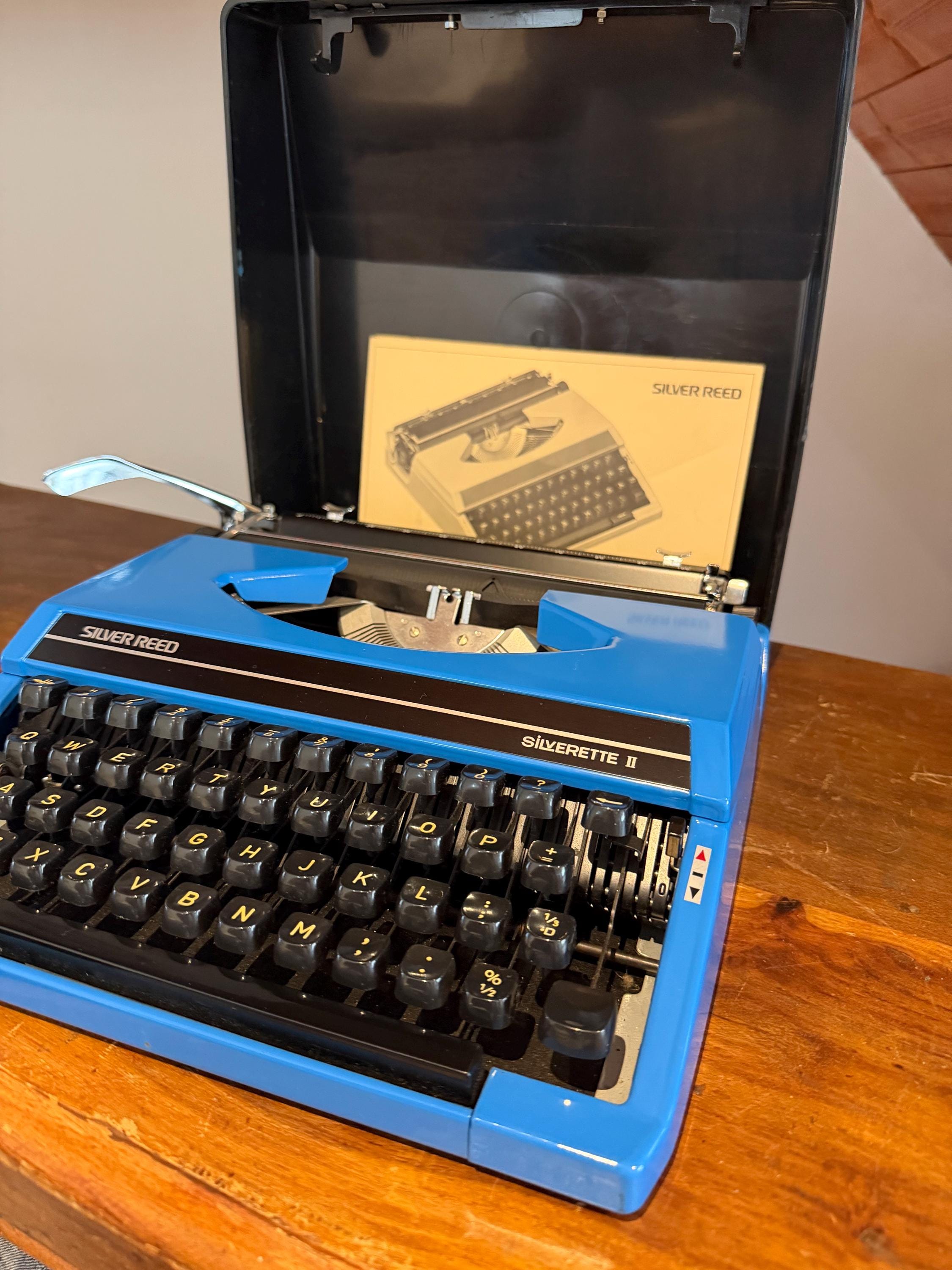 Own a piece of design history with this striking Silver-Reed Silverette II in a rare, vibrant Electric Blue. This isn't just a shelf piece; it is a fully functional, high-performance portable typewriter that’s ready to work.